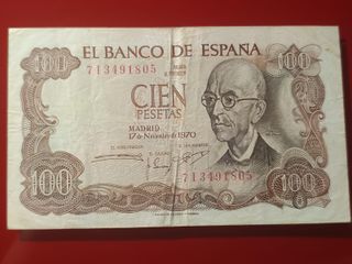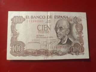 Billete original de 100 pesetas, emitido el 17 de noviembre de 1970 en Madrid, con la efigie del célebre compositor Manuel de Falla al anverso. En el reverso aparece el Patio de los Surtidores del Generalife de Granada. Diseño artístico y clásico del Banco de España. En buen estado general, ideal para coleccionistas o amantes de la música y la historia española. Se entrega en El Prat de Llobregat (Barcelona) o se envía por correo.