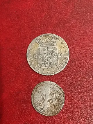 Dos monedas plata españolas. - Un Real de los Reyes Católicos. - Dos reales de Carlos III. 1765. PJ. En muy buen estado. Entrega en mano en Madrid. Seriedad absoluta.