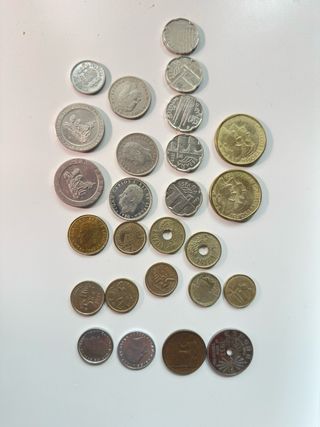 Se vende lote de monedas españolas. - 32 monedas de 50 pesetas. - 40 monedas de 5 pesetas. - 40 monedas de 1 peseta. - 30 monedas de 5 pesetas. - 40 monedas de 1 peseta. - 40 monedas de 1 peseta. - 30 monedas de 0,5 pesetas. - 48 monedas de 25 pesetas. - 4 monedas de 200 pesetas. - 4 monedas de 2 pesetas. - 16 monedas de 1 peseta.