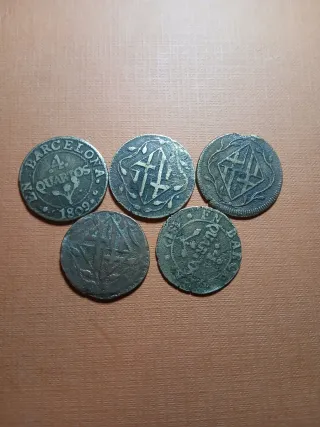 Lote formado por 20 cobres españoles. Varios son de 4 quartos Barcelona. Algunos reselleos, Reyes Católicos.....buen lote en general. Entrega en mano en Madrid. Seriedad absoluta. Precio no negociable.