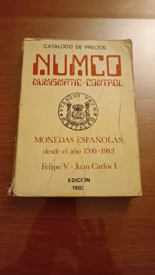 Catálogo de precios de monedas españolas de Numismatic-Control. - Cubre el periodo de 1700 a 1983. - Incluye monedas de Felipe V a Juan Carlos I. - Edición de 1983.