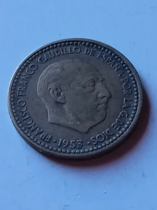 Una peseta del año 1953 estrellas 19-63 de Madrid de cobre más en mi perfil