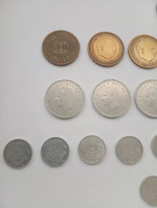 Conjunto de monedas antiguas de pesetas españolas. - Monedas de diferentes años y valores. - Ideal para coleccionistas.Ay una bastante antigua y valiosa