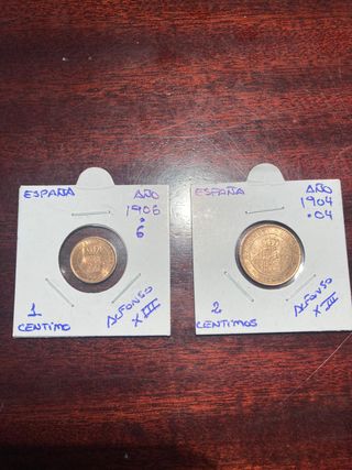 1 y 2 céntimos Alfonso XIII 1906 y 1904