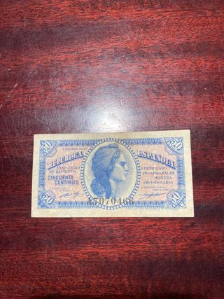 Billete de 50 céntimos de la República Española, emitido en 1937. - Emisión: 1937 - Denominación: 50 céntimos - País: España - Ministerio de Hacienda