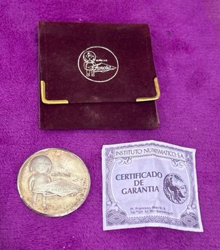 Moneda conmemorativa de plata de Famosa. - Diseño de Muñecas Famosa. - Certificado de Garantía del Instituto Numismático, S.A. - Incluye estuche de terciopelo.