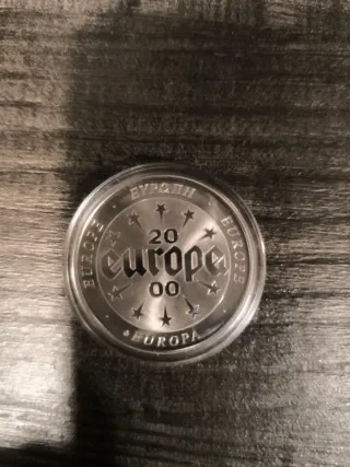 Medallón conmemorativo del año 2000, dedicado a Europa. - Diseño con estrellas y el texto EUROPA en relieve. - Grabado EUROPA 2000 en la parte frontal. - Presentado en una cápsula protectora.