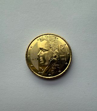 No es negociable. Moneda de 10 céntimos de euro con un cuño desplazado, rarísima. - Año 2020. - Diseño de la moneda: mapa de Europa. - Material: Trímoneda (cobre, aluminio, níquel). - Borde: Estriado.