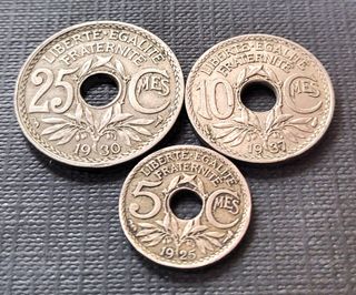 Monedas Francesas 25, 10 y 5 Centimes