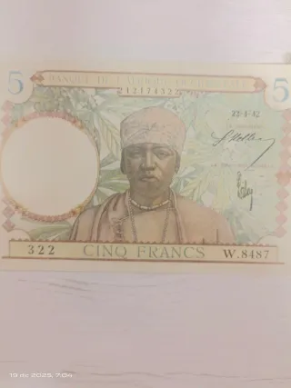 Billete 5 Francos África Occidental Francesa