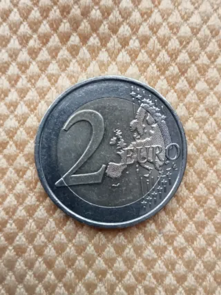 Se trata de una moneda de 2 euros francesa del año 1999. La moneda, diseñada por el artista Joaquín Jiménez, presenta: El error mas visible sería en el anverso, el núcleo central color oro esta descentrado hacia el lado izquierdo y hacía arriba, dejando separación irregular - Diseño central con un árbo, que simboliza la vida, la continuidad y el crecimiento. y las letras RF. - Inscripción LIBERTÉ ÉGALITÉ FRATERNITÉ en el borde. - Año 1990 visible.