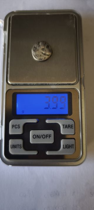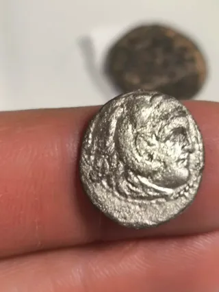 Moneda antigua de plata, un dracma griego con la efigie de Alejandro Magno. 3,82gr y 17mm Lote numero 16 - Diseño detallado de la cabeza. - Material: Plata.