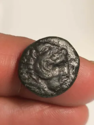 Moneda original del Reino de Macedonia, emitida bajo el reinado de Filipo II (359–336 a.C.), el gran rey que transformó Macedonia en una potencia y padre de Alejandro Magno, conquistador del mayor imperio de la Antigüedad. AE Quarter Unit, ceca de Salamina. En el anverso aparece Heracles con piel de león, símbolo de fuerza divina y ancestro mítico de la dinastía macedonia. En el reverso, la inscripción griega ΦΙΛΙΠΠΟΥ (“de Filipo”), junto a arco y maza, emblemas del poder real. Peso: 1,31 g. Diámetro: 10,66 mm. Más de 2.300 años de historia auténtica en una pieza original. Ideal para coleccionistas de moneda griega