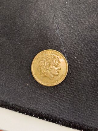 Moneda de colección con un diseño único. - Diseño con figura humana y balón de baloncesto. - Borde exterior con estrellas. - Inscripción en griego y números romanos. Precio negociable