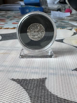 Moneda antigua con detalles grabados. Obol Griego de plata a identificar 0,45 gramos 7.0mm tamaño inferior o similar a una lenteja. - Diseño circular. - Material metálico.