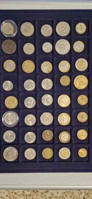 Colección de monedas de diferentes países. - Variedad de diseños y acuñaciones. - Ideal para coleccionistas.