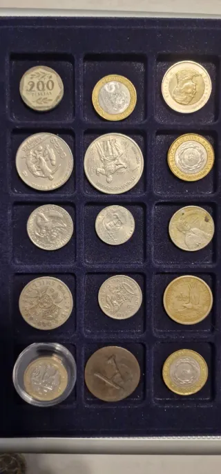 Colección de monedas de varios países. Cada moneda tiene un diseño único. NO SEPARO,LOTE COMPLETO - Monedas de diferentes metales y tamaños. - Diseños variados con motivos nacionales e internacionales.
