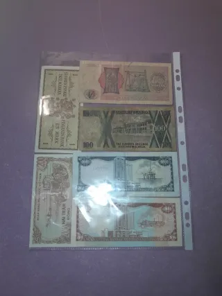 Colección de billetes de diferentes países. Incluye billetes de Mongolia, Indonesia, Brasil, Venezuela y otros. - Billetes de diversas denominaciones y diseños. - Ideal para coleccionistas. Hay 7 billetes sin circular 3 billetes usados