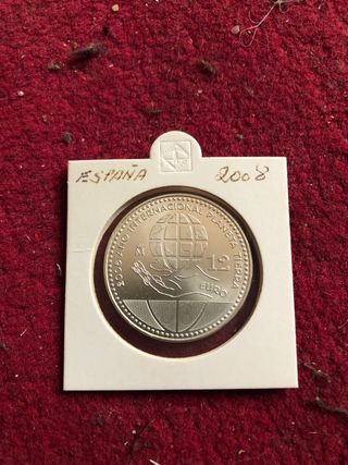 Moneda conmemorativa de España del año 2008. - Valor nominal de 12€. - Conmemora el Año Internacional del Planeta Tierra. - Presentada en su embalaje protector.