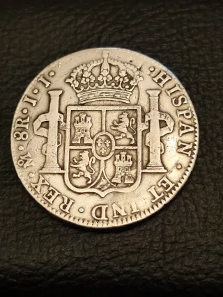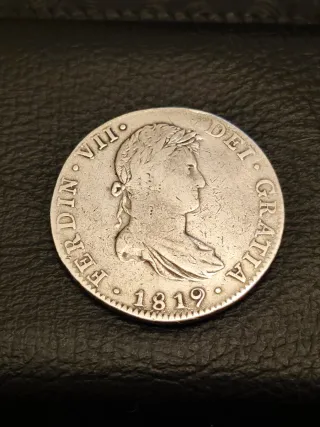 Preciosa moneda original de 8 Reales acuñada en 1819 en la Casa de Moneda de México durante el reinado de Fernando VII. Una de las monedas más emblemáticas del sistema colonial español y muy buscada por coleccionistas. Características: • Año: 1819 • Ceca: México (Mo) • Ensayadores: JJ • Metal: Plata 0,903 Estas monedas, conocidas como el “duro colonial” o “Spanish Dollar”, circularon por todo el mundo y fueron referencia en el comercio internacional del siglo XIX. Moneda auténtica con más de 200 años de historia.