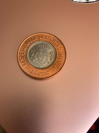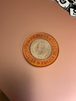 Moneda conmemorativa de 5 pesetas de Juan Carlos I de 1975. “Reafirmación internacional de España” “Respeto a los derechos humanos” X&F, calicó de barcelona
