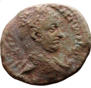 Moneda de bronce de Elagabalus (218–222 d.C.). • Anverso: Busto laureado y drapeado del emperador. • Reverso: Busto de Tyche. • Medidas: 17 mm. • Peso: 3,27 g. Pieza provincial de época severiana, representando a Elagábalo y la diosa Tyche, muy característica de las emisiones orientales del Imperio Romano. Procedencia: Subasta internacional (se entrega con copia factura original).