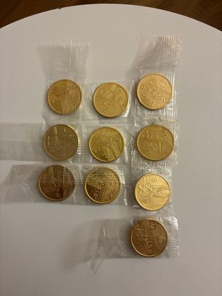 Se venden monedas de colección de las Olimpiadas del 2000, 88, 84 y 76. Color oro ( aunque no tiene oro es muy similar en color ) Pesan alrededor de 5gr por moneda y son pequeñas. En general estan e buen estado y no tienen ni marcas ni color saltado. Envío: 》No InPost 》Hasta 5€ de oferta 》En correos en -24h 》No devoluciones ya que estan en buen estado