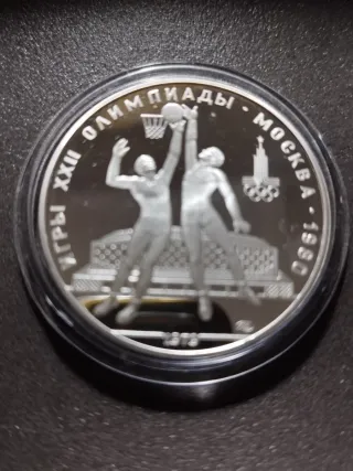 Moneda de plata conmemorativa de los Juegos Olímpicos de Moscú 1980. - Diseño que representa un partido de baloncesto. - Inscripción Juegos de la XXII Olimpiada - Moscú 1980 en ruso. 10 rublos Entrego en Madrid Envío previo Bizum.