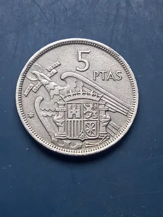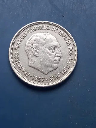 Moneda de 5 pesetas de Franco del año 1957 con estrella 59. La que se ve en las fotos