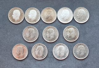 Lote de 12 monedas de 2,5 pesetas del año 1953.
