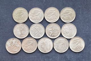 Colección completa con las 12 monedas de 5 pesetas de módulo pequeño acuñadas durante el reinado de Juan Carlos I, acuñadas entre 1989 y 2001. - 5 Pesetas 1989 - 5 Pesetas 1990 - 5 Pesetas 1991 - 5 Pesetas 1992 - 5 Pesetas 1993 Xacobeo - 5 Pesetas 1994 Aragón - 5 Pesetas 1995 Asturias - 5 Pesetas 1996 La Rioja - 5 Pesetas 1997 Islas Baleares - 5 Pesetas 1998 - 5 Pesetas 1999 Murcia - 5 Pesetas 2000 - 5 Pesetas 2001