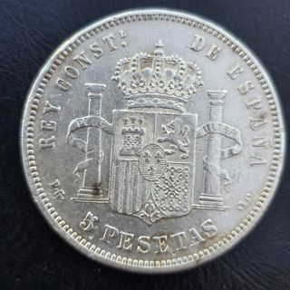 Preciosa moneda de 5 pesetas de Alfonso XIII, acuñada en 1893. Se encuentra en buen estado de conservación, aunque presenta señales normales del paso del tiempo. - Moneda de plata. - Año de acuñación: 1893. - Representación del rey Alfonso XIII en un lado y el escudo de España en el otro.