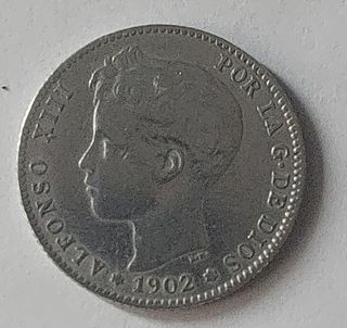 Moneda de 1 peseta de Alfonso XIII, acuñada en 1902./02 SMV MBC+ - Año: 1 PTS 1902 - Emisor: Alfonso XIII - Marca de ceca: SMV - Conservación: MBC+