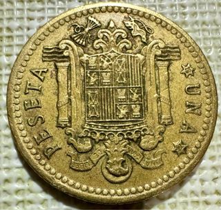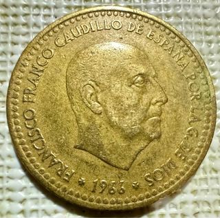 Moneda de 1 peseta de España, con la efigie de Francisco Franco. - Año: 1953 Dispongo también de 1963 y años posteriores.