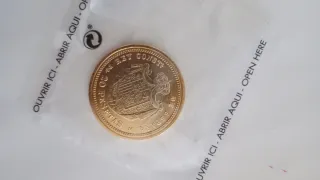 Moneda antigua para coleccionistas. Presenta un diseño detallado y un acabado metálico. - Diseño con retrato. - Borde con inscripciones.