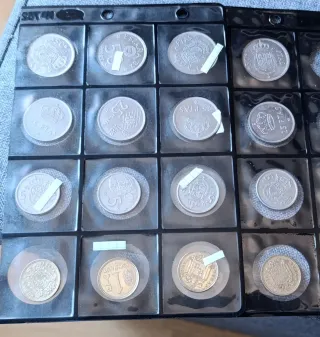 Conjunto de 16 monedas de peseta, algunas con la efigie de Francisco Franco. - Monedas de diferentes años, incluyendo 1966 y 1967. - Ideal para coleccionistas.