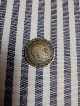 Moneda de peseta española del año 1947. Se encuentra en buen estado de conservación. -Estrella 51. Acuñada en 1947. -Muestra el perfil de Franco. -Pieza ideal para coleccionistas.