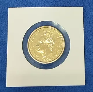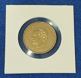 Último sistema monetario de la peseta antes del euro. Todos los valores en moneda: 1, 5,10,25,50,100,200 y 500 pesetas. - Canto: Estriado. - Diámetro: 23.25 mm. - Peso: 8.7 g.