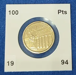 Moneda de 100 pesetas del año 1994. - Diseño conmemorativo. - Canto estriado.