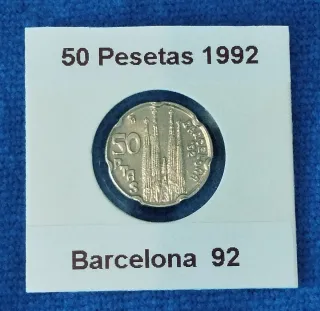 Moneda conmemorativa de 50 pesetas del año 1992, con la imagen de la Sagrada Familia de Barcelona - Diseño: Sagrada Familia. - Año: 1992. - Denominación: 50 Pesetas.