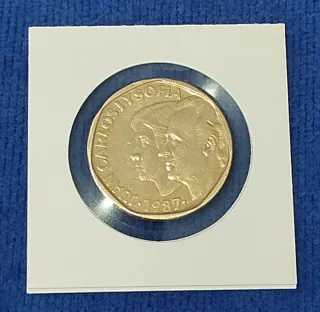 moneda conmemorativa española de 200 pesetas del año 1997, dedicada a Jacinto Benavente. La moneda fue acuñada por la Fábrica Nacional de Moneda y Timbre (FNMT) durante el reinado de Juan Carlos I. Conmemora a Jacinto Benavente, dramaturgo español y ganador del Premio Nobel de Literatura en 1922.