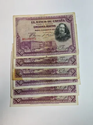 Billetes de 50 pesetas de 1928. Precio por unidad 2€. Ideal para coleccionistas, aficionados a la historia o quienes buscan piezas con valor sentimental. Puedes combinar varios billetes de mi perfil para ahorrar en el envío. Envío: Correos ordinario por solo 1 € o certificado por 5 € (con responsabilidad del comprador). . Peseta, pesetas, españa, coleccionismo, numismática, antigüedades, billetes antiguos, coleccionables, colecciones, coleccionismo, lote, moneda, monedas, filatelia, notafilia, billetes, peseta.