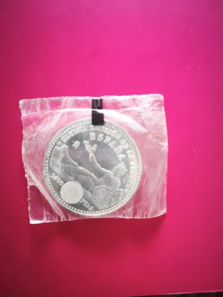 Moneda de plata conmemorativa del año 1990. Plata 0.925 Olimpiadas Barcelona Sin capsula, en el estado en que se ve en las fotos.