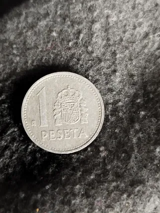 Moneda de 1 peseta de España. Presenta el escudo de España.
