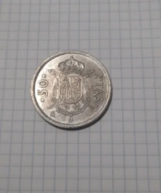 Moneda de 50 céntimos de peseta española. Circulada. Precio por 2 unidades (para cubrir el mínimo de envío). Varias unidades disponibles. También posibilidad de entrega en mano en Salamanca o Coruña (previo acuerdo de la fecha).