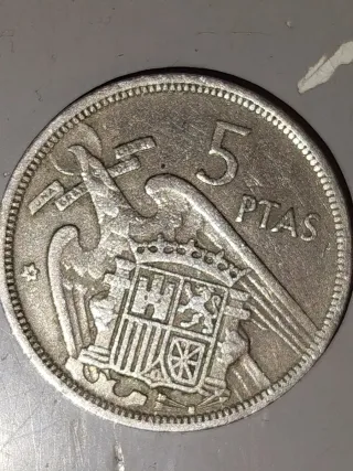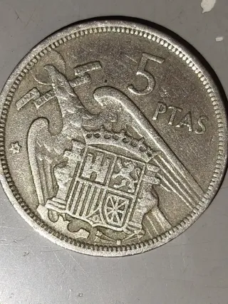 Moneda de 5 pesetas. - Diseño con escudo y leyendas. - Borde con estrías. entrega en mano y escucho ofertas
