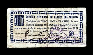 1937 PLANES DEL MONTSIÀ ~1 PESETA (ESCASO BILLETE)