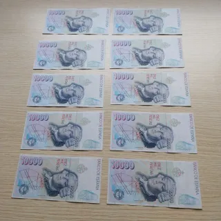 Conjunto de diez billetes de 10000 pesetas de España. - Billetes de curso legal. - Diseño con retrato de Juan Carlos I. - Serie de billetes variada.