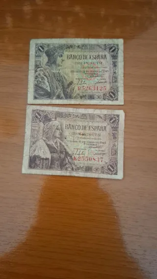 Se venden dos billetes de 1 peseta del Banco de España, con la imagen de los Reyes Católicos. - Billetes de colección. - Fecha: 21 de junio de 1945. - Serie K.