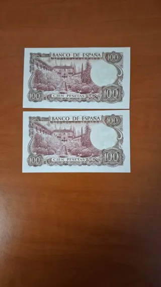 2 Billetes 100 Pesetas España 1970 Correlativos
